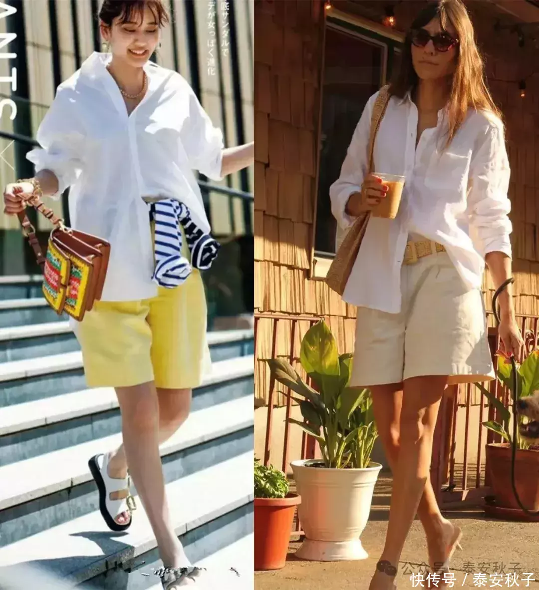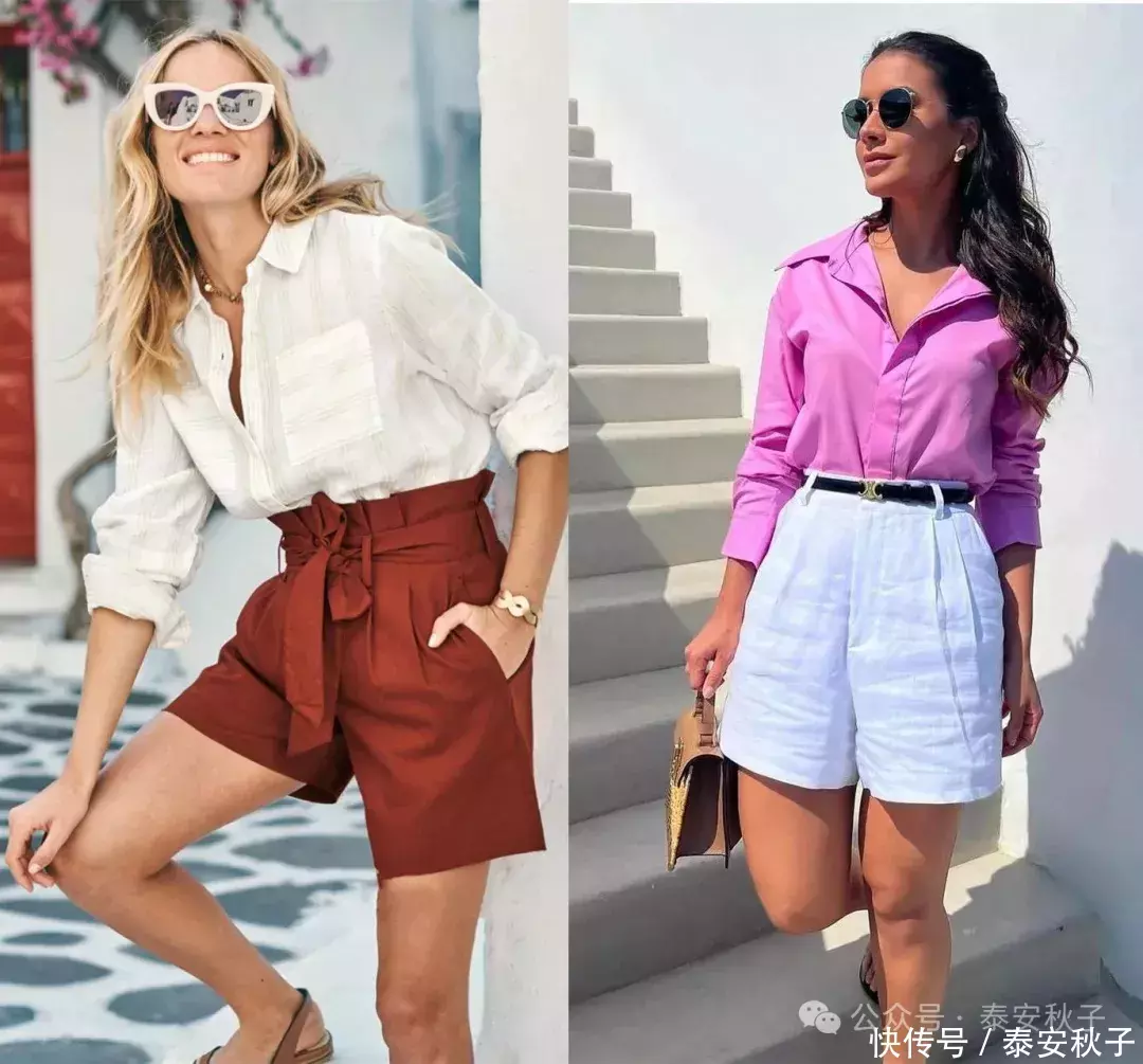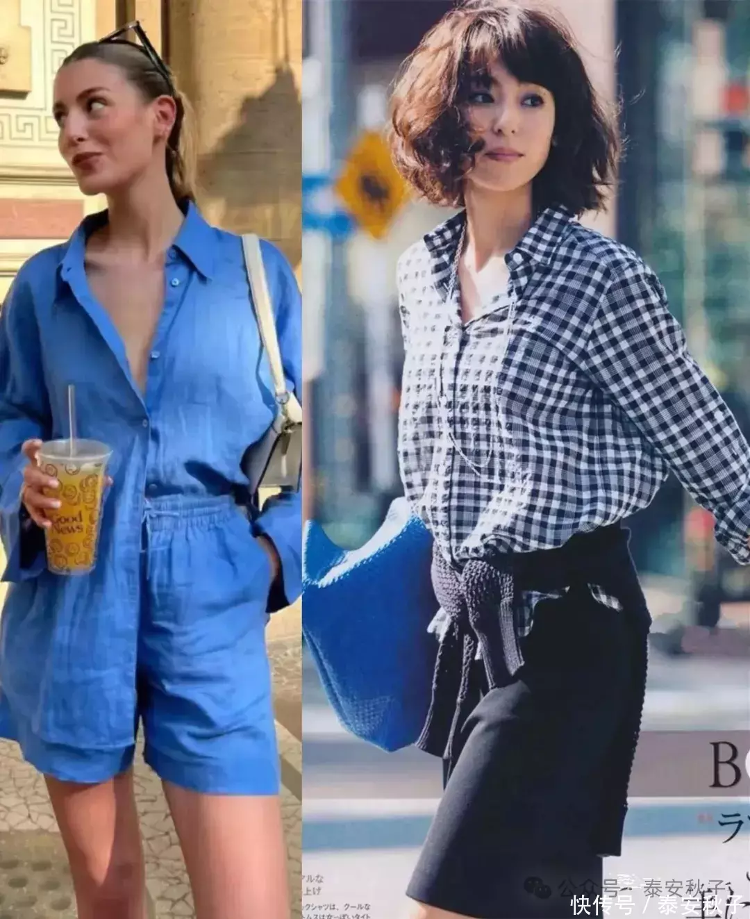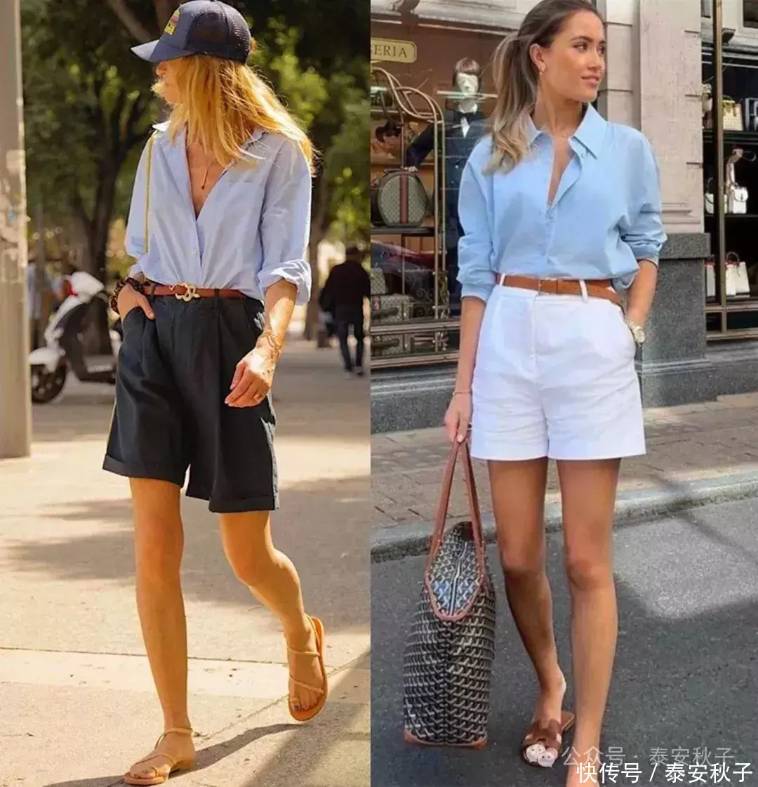 衬衫,是老道时髦精的专属,有知性、干练的属性;而西装短裤的挺阔、与利落感,也是普通短裤无法比拟的。